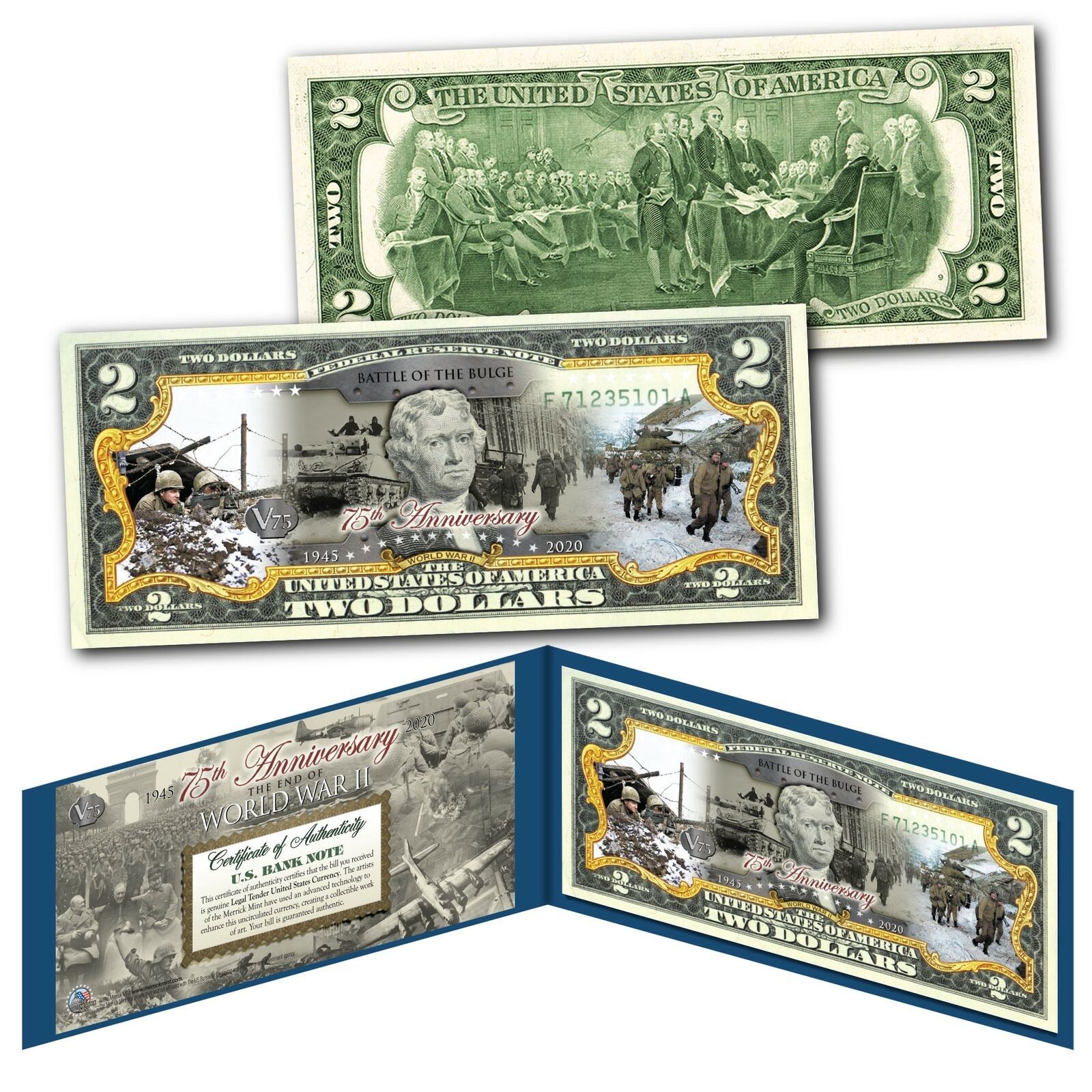 BATTLE OF THE BULGE - End of WWII 75th Anniversary V75 - Authentic $2 U.S. Bill