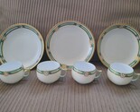 - Bavaria Belmont 534 Handpainted Deco China Vintage Gold Green 4 Cups & 3 Bowls