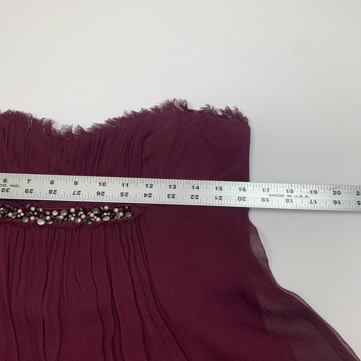 - BCBGMAXAZRIA Womens Dress Maroon Size 10 Silk Zip Strapless Beaded