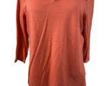 Beach Lunch Lounge Orange Embroidered V Neck 3/4 Sleeve Top, Women's Small