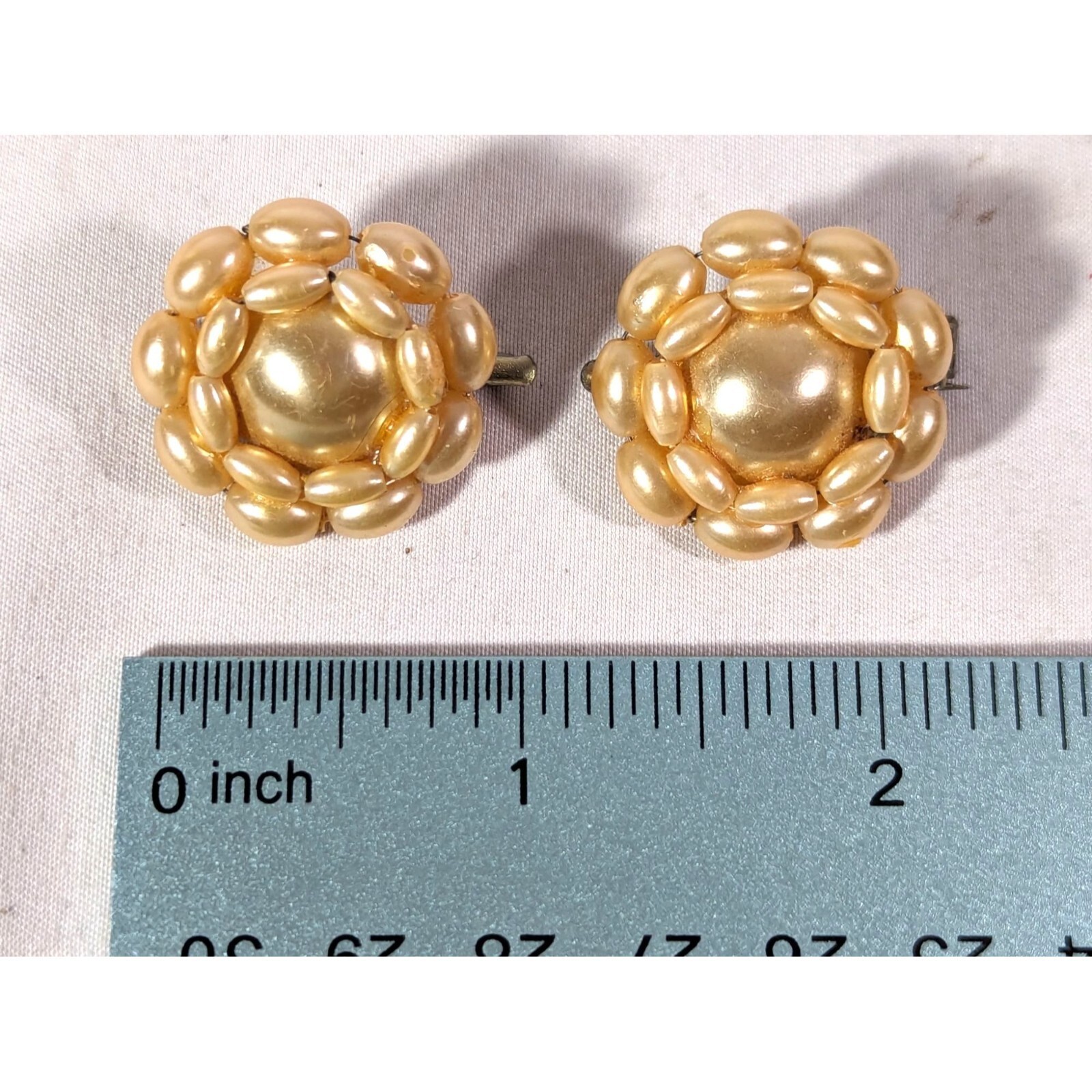 - Beaded Flower Brooch Pair Cream 1-in Wide Retro Collectible Vintage 1950s Gift