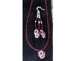 - Beaded Oklahoma Sooners OU Earring & Necklace Set Crimson White Glass Beads Nati