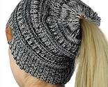- Beanie Ponytail Soft Stretch Cable Knit Ponytail Beanie Hat Cap Black Osfm