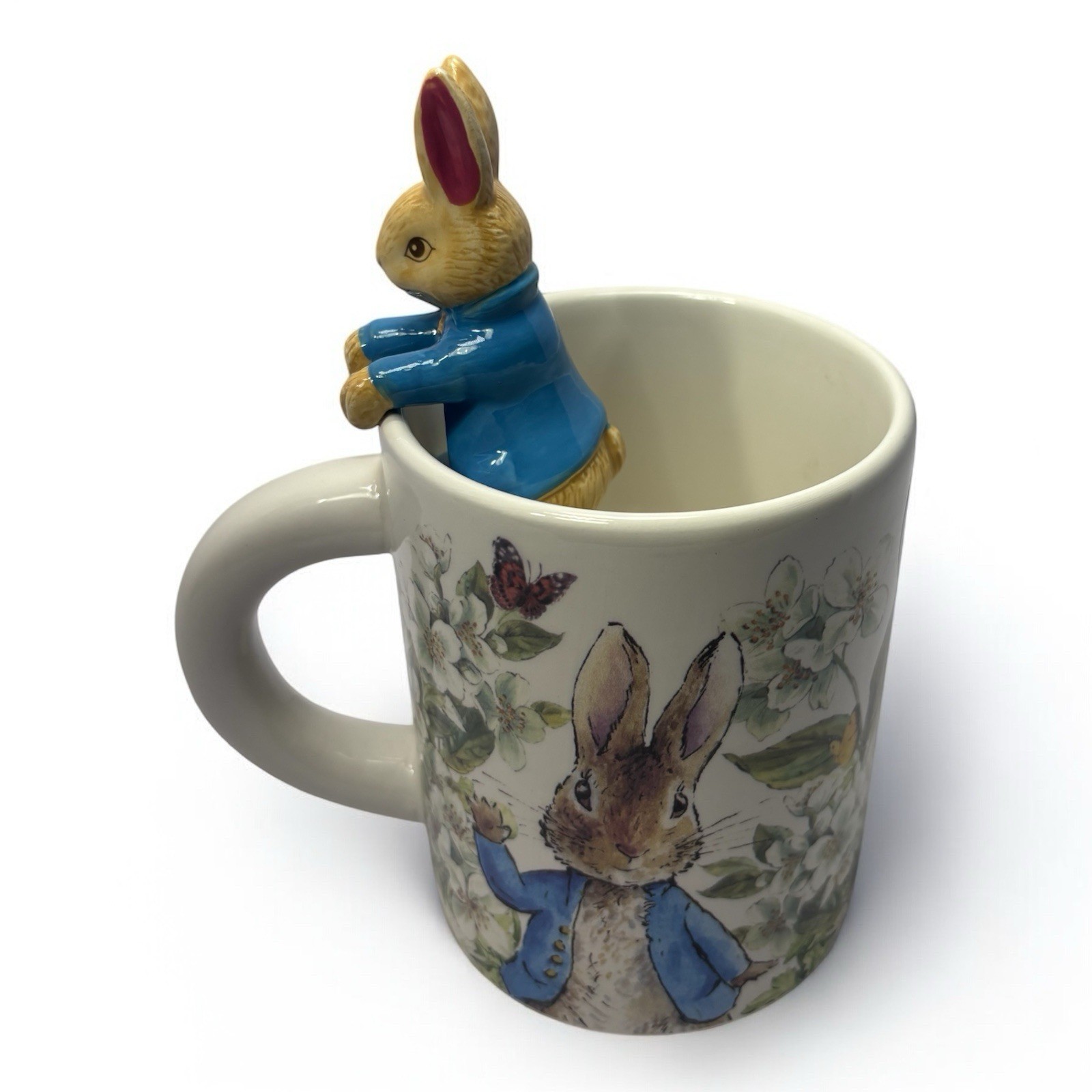 Charming mug with a 3D Peter Rabbit figurine and classic floral artwork. Great for collectors! Excellent condition. Ships securely!
