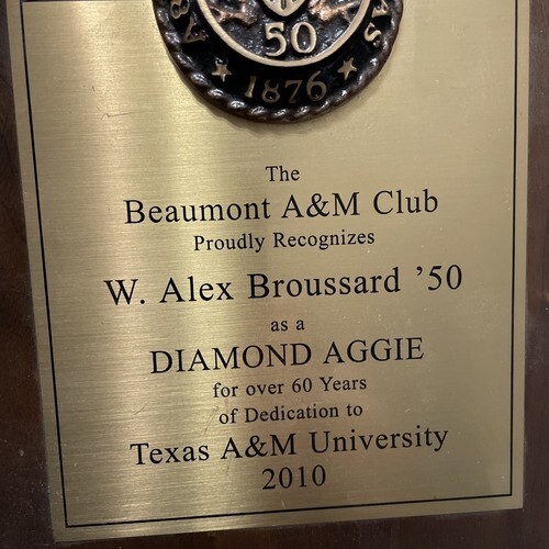 - Beaumont A&M club plaque Diamond Aggie 2010 Texas A&M