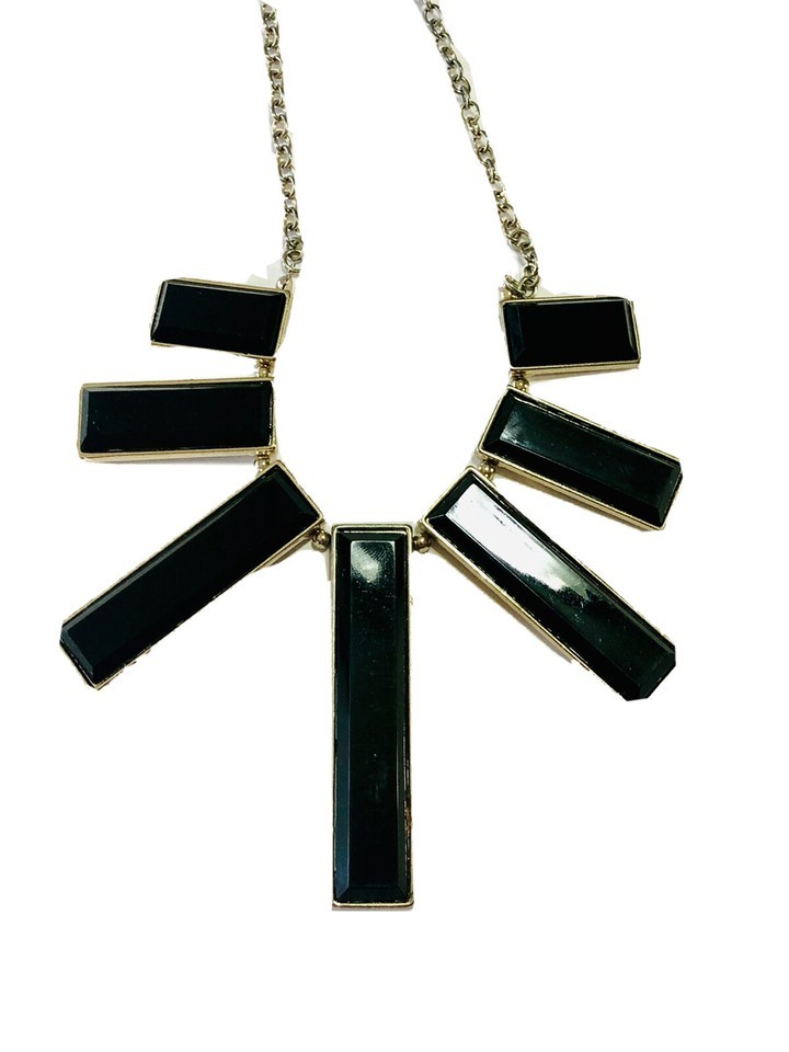 - Beautiful Art Deco Black Acrylic Necklace Vintage Jewelry 12.5”