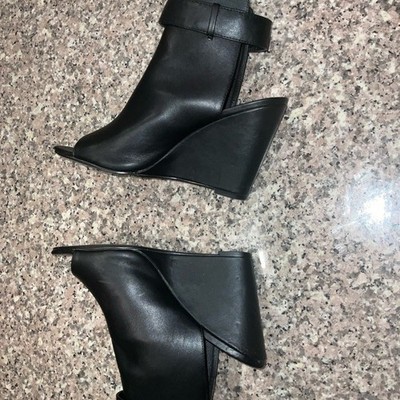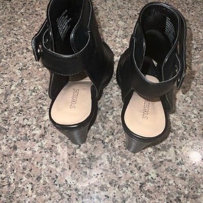- Beautiful Black and Gold Open Toe Leather Wedge