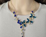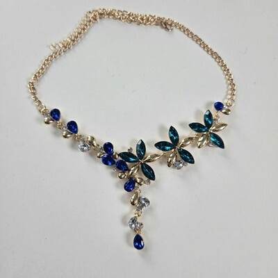 - Beautiful Goldtone Green and Blue Rhinestone Statement Necklace