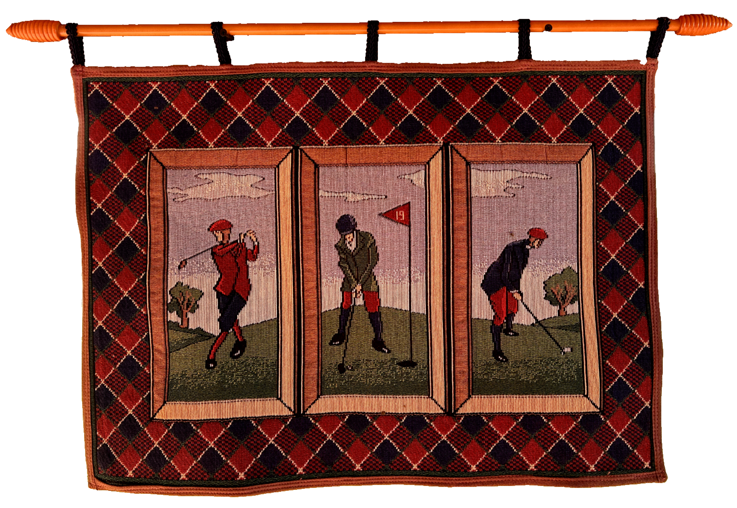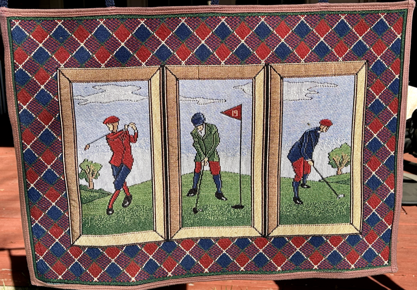 - Beautiful Golf Wall Hanging Tapesty 3 golfers in knockers - 19.5" x 27.5"
