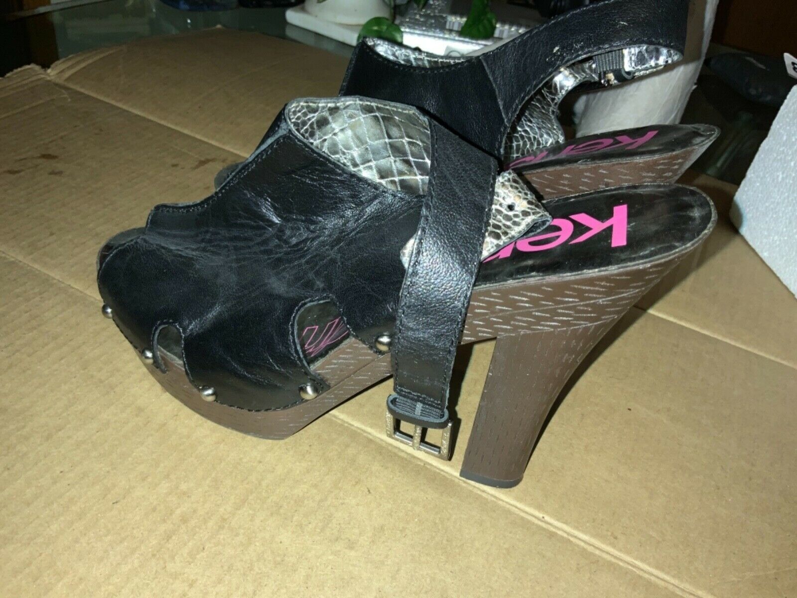 Beautiful Kensie Girl Black Faux Wood Sandal Platform Heels Size 11B