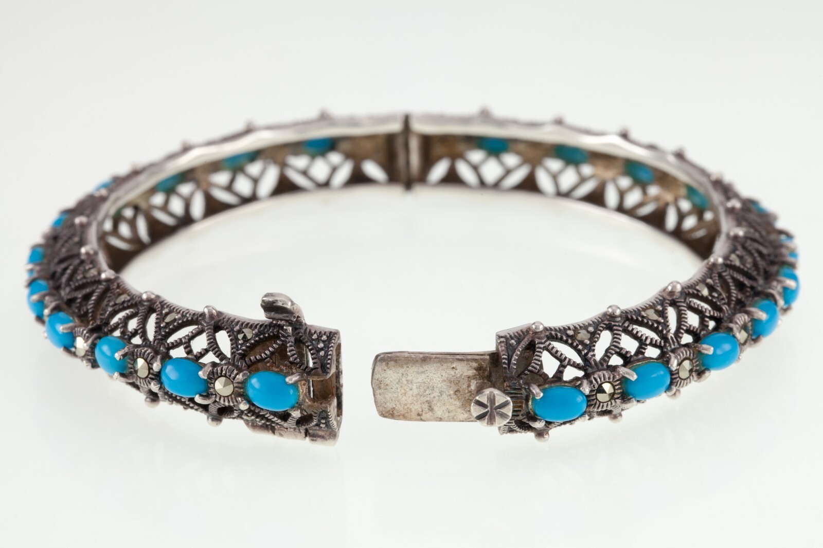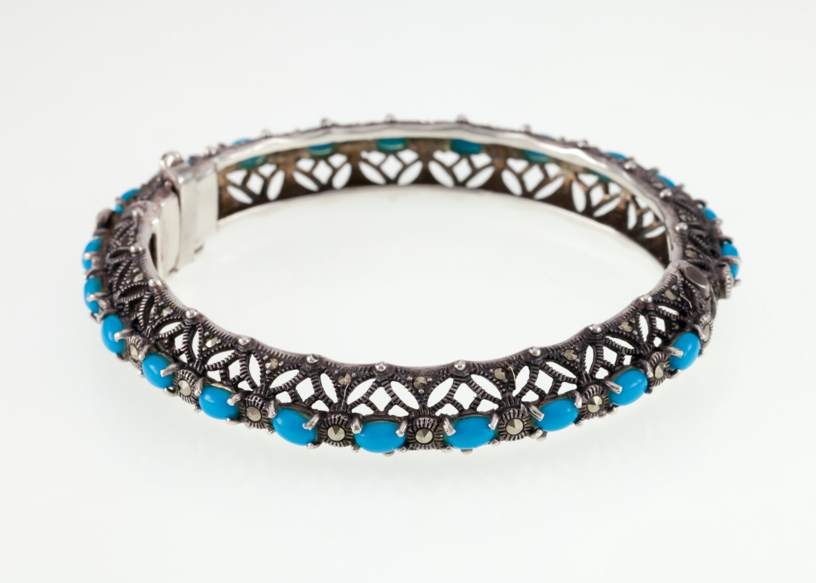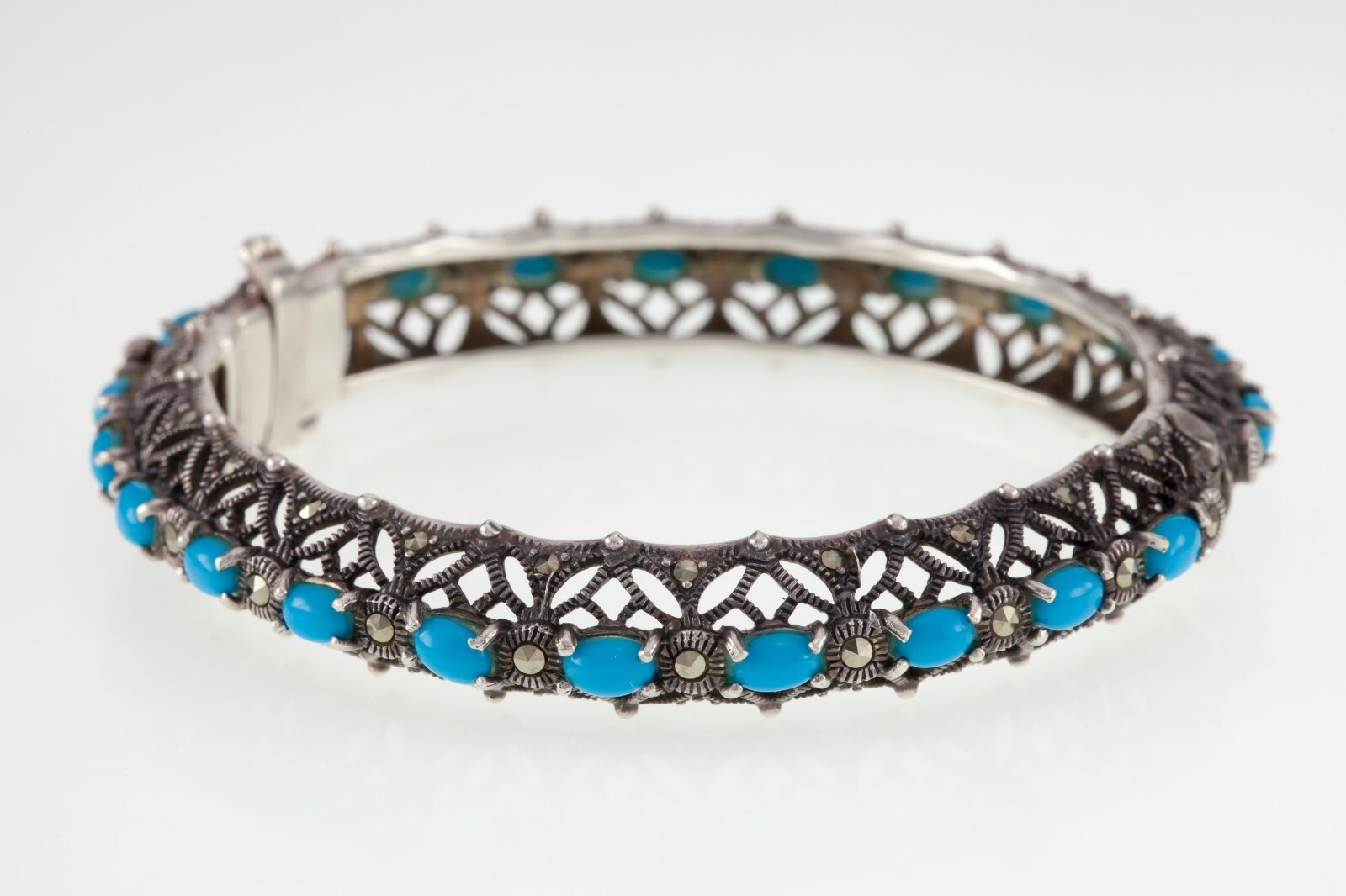 - Beautiful Sterling Silver Turquoise and Marcasite Bracelet 32.8g