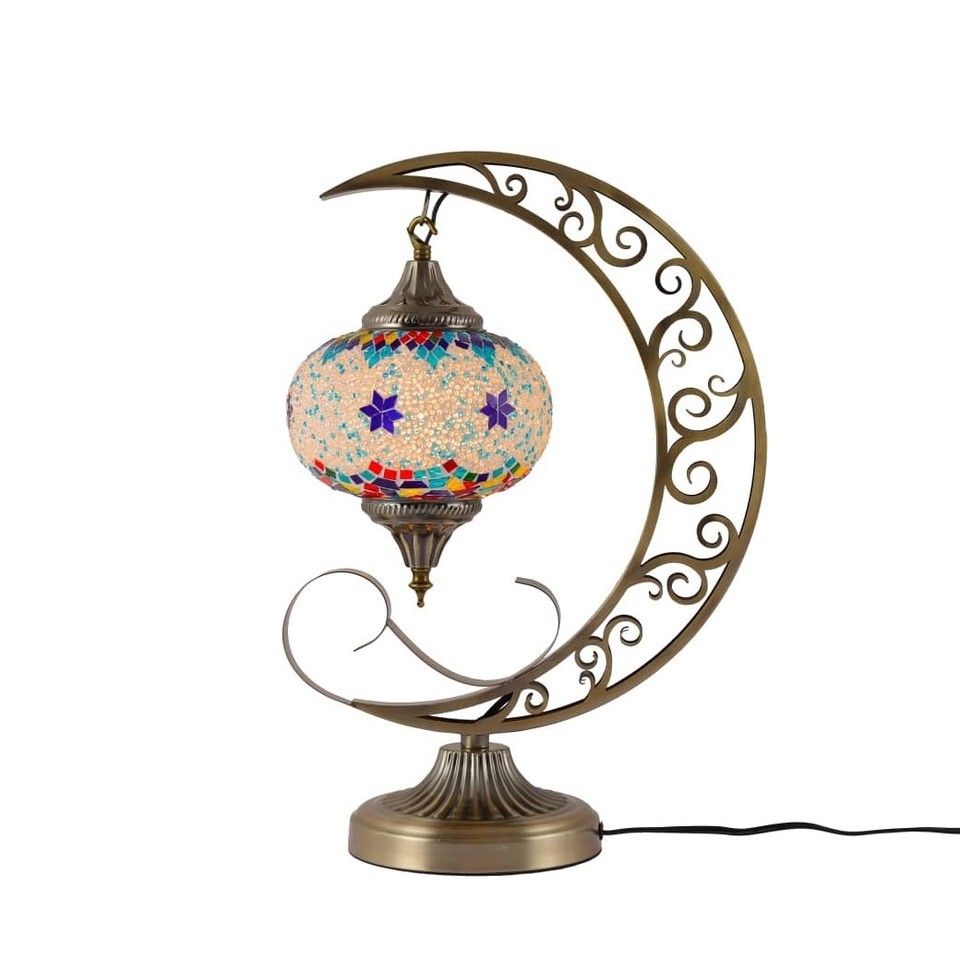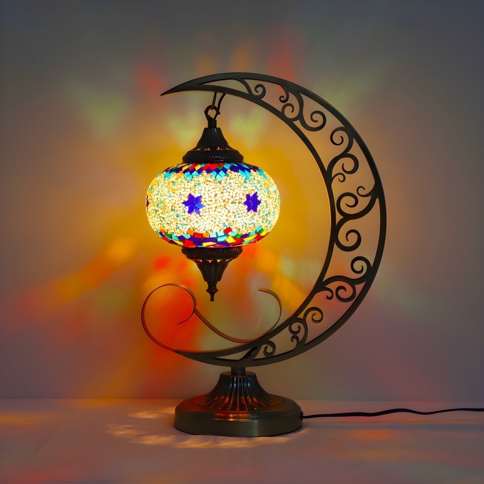 - Beautiful Turkish Mosaic Stained Glass Crescent Moon Bedside Table Lamp