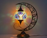 - Beautiful Turkish Mosaic Stained Glass Crescent Moon Bedside Table Lamp