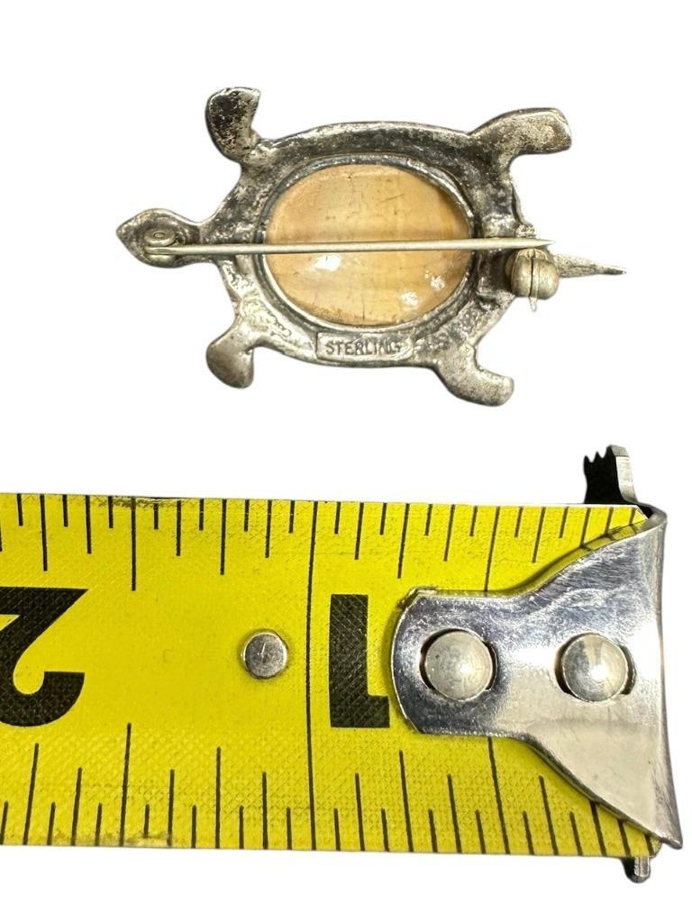 - Beautiful Vintage Sterling Silver Beige Turtle Pin Broach Brooch