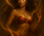 Meet a radiant **female Djinn spirit** devoted to blessing her master with youth, beauty, and captivating allure. She is breathtaking in appearance, with an aura of elegance and power that mirrors the glamour she bestows.