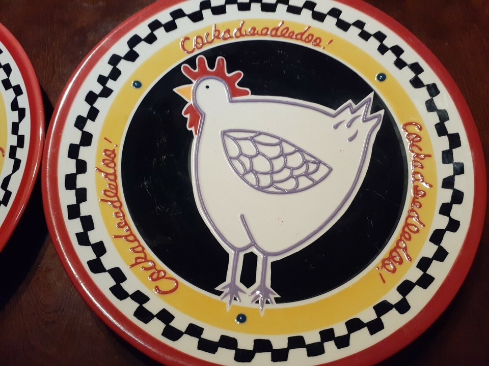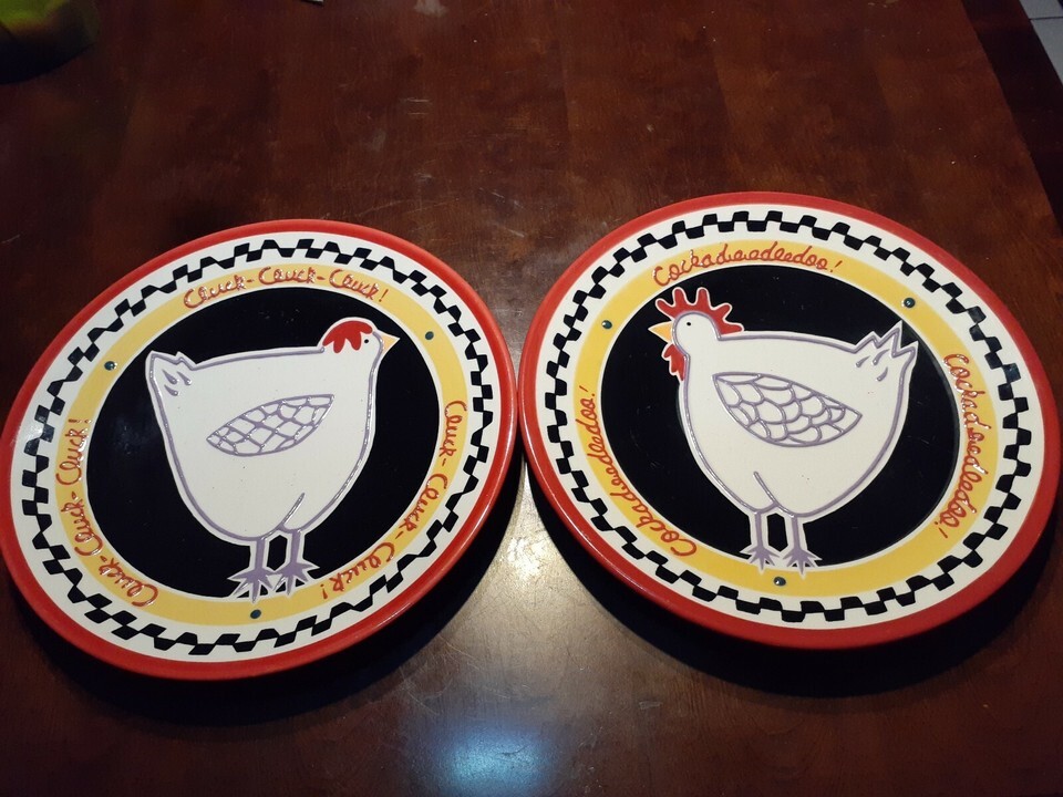 - Becky Denny Cluck,Cluck,Cluck, 12" Round Chicken Platter Serving Dishes(2)Plates