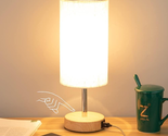 Bedside Table Lamp with USB Port - Touch Control for Bedroom Wood 3 Way Dimmable Nightstand Lamp with round Flaxen Fabric Shade for Living Room, Dorm, Home Office (LED Bulb Included)