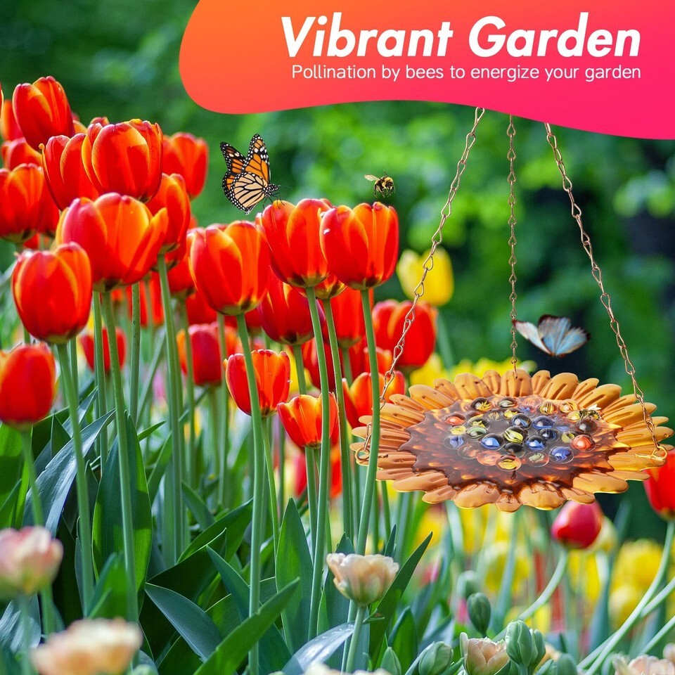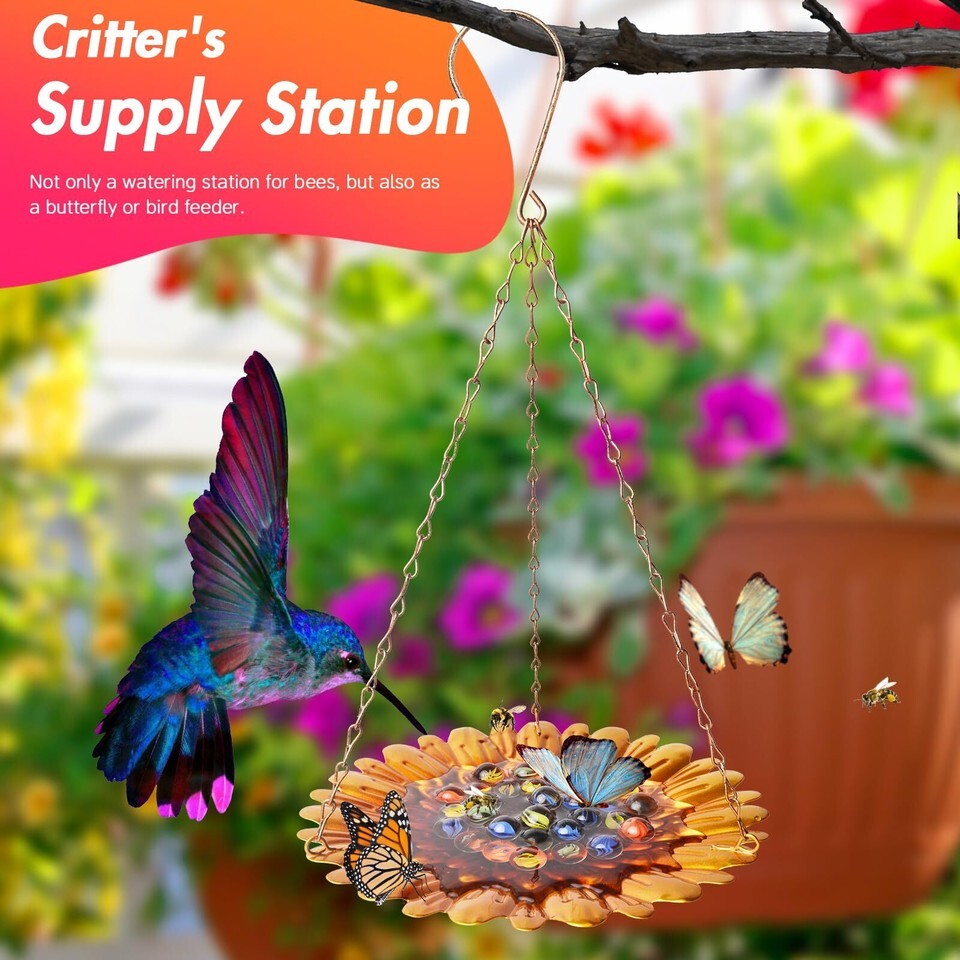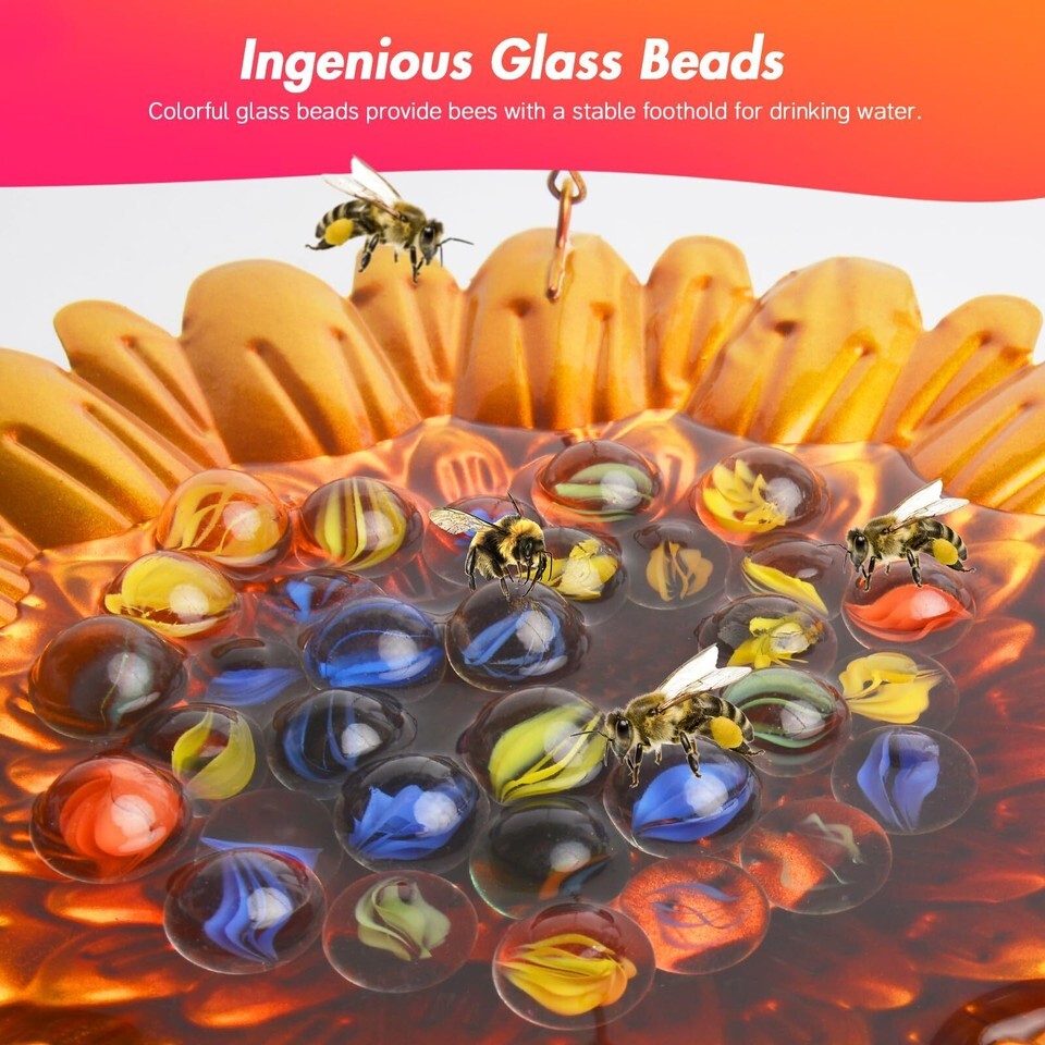 - Bee Watering Station Hanging Feeder with Glass Marbles Sunflower Pattern