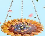 Bee Watering Station with Colorful Glass Marbles,Bee Cup for Thirsty Pollinators,Sunflower Patterned IRON Garden Decor-Hanging Bee Feeder