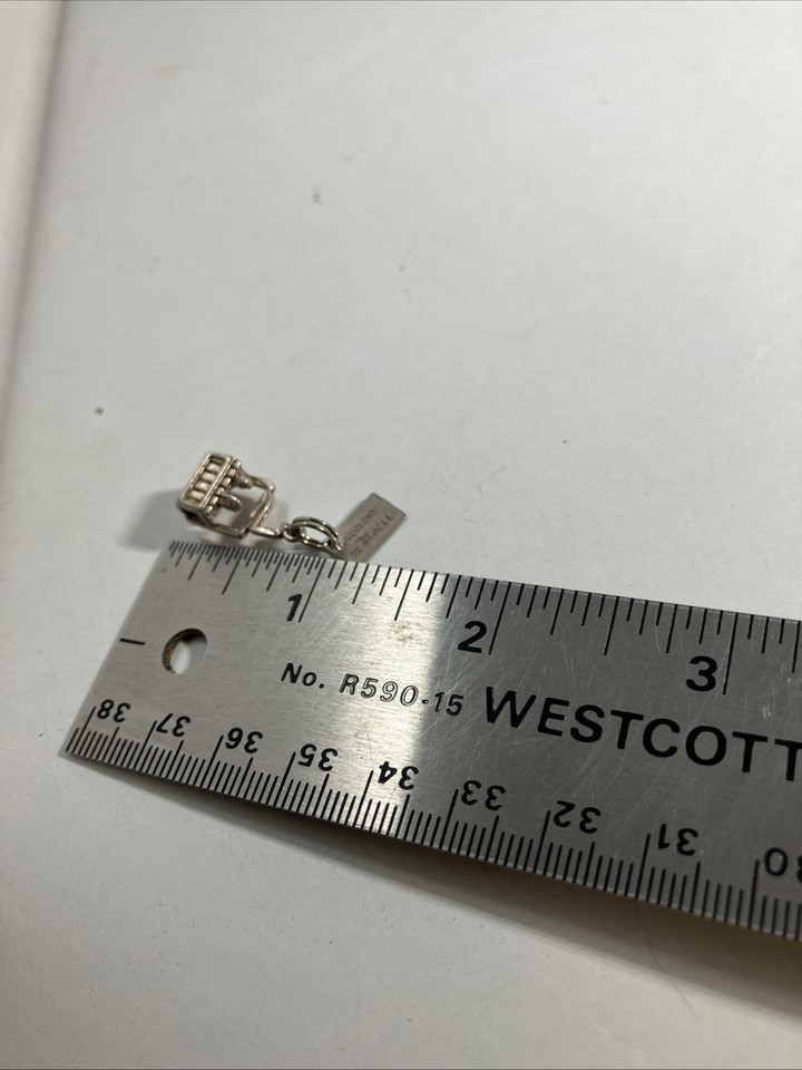 This Bell Trading Post Sterling Silver Clarksville MO Sky Cable Lift Charm is a unique and charming piece of jewelry. Crafted from sterling silver, this charm features a design of a sky lift with a sitting couple.