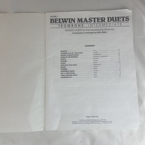 - Belwin Master Duets Trombone Intermediate Vol 1 Keith Snell Alfred Music Book