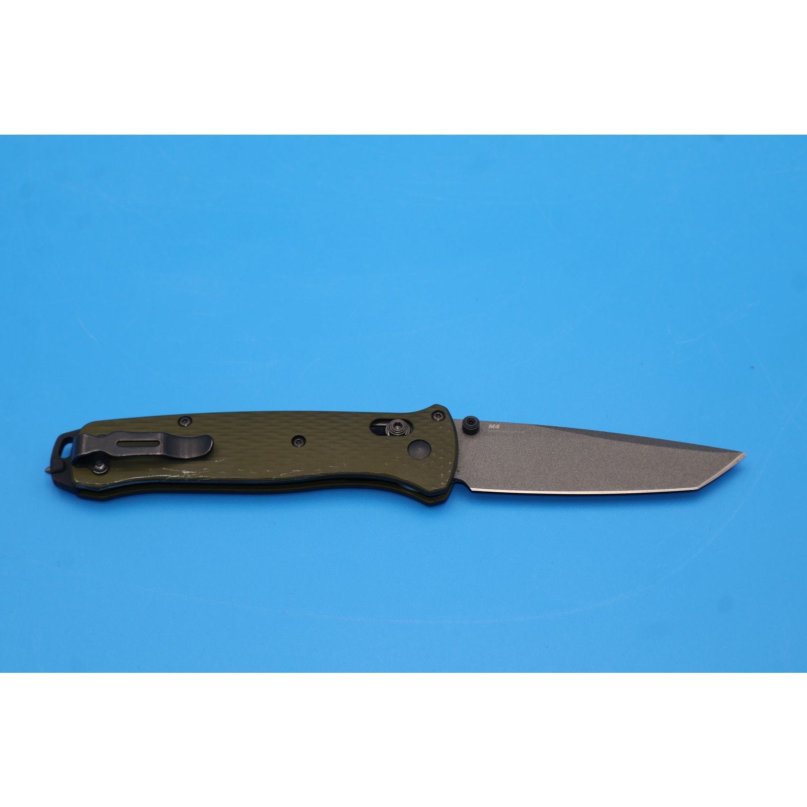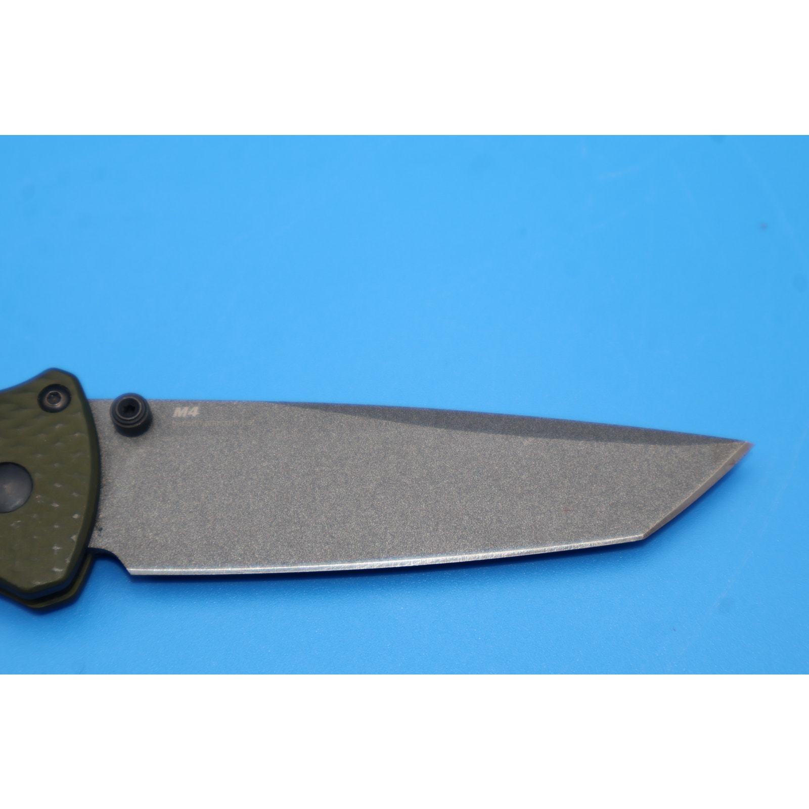 - Benchmade 537GY Bailout Tanto Folding Knife CPM-M4 Blade Green Aluminum Handle