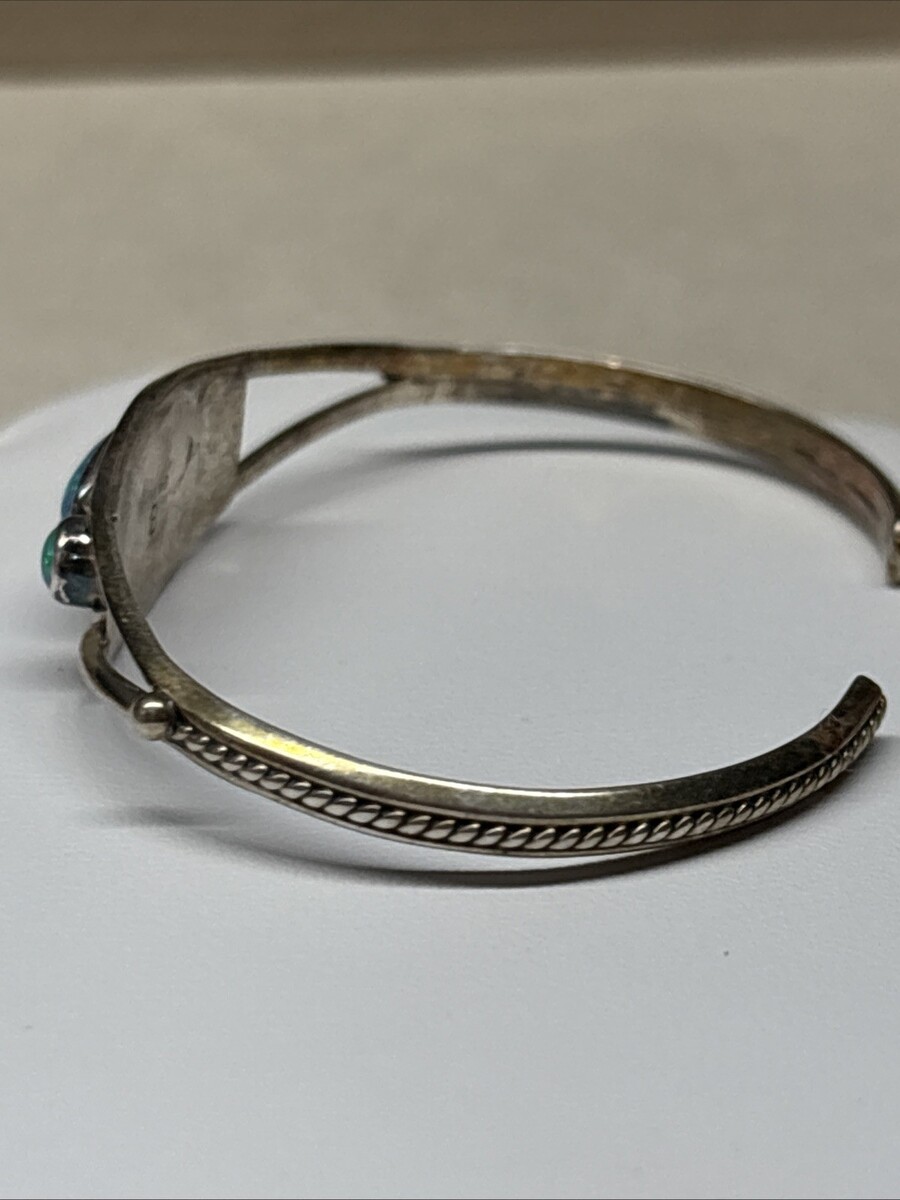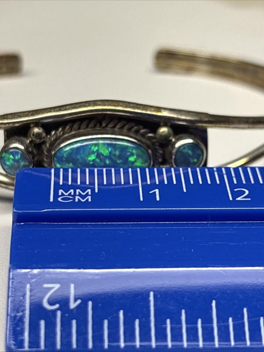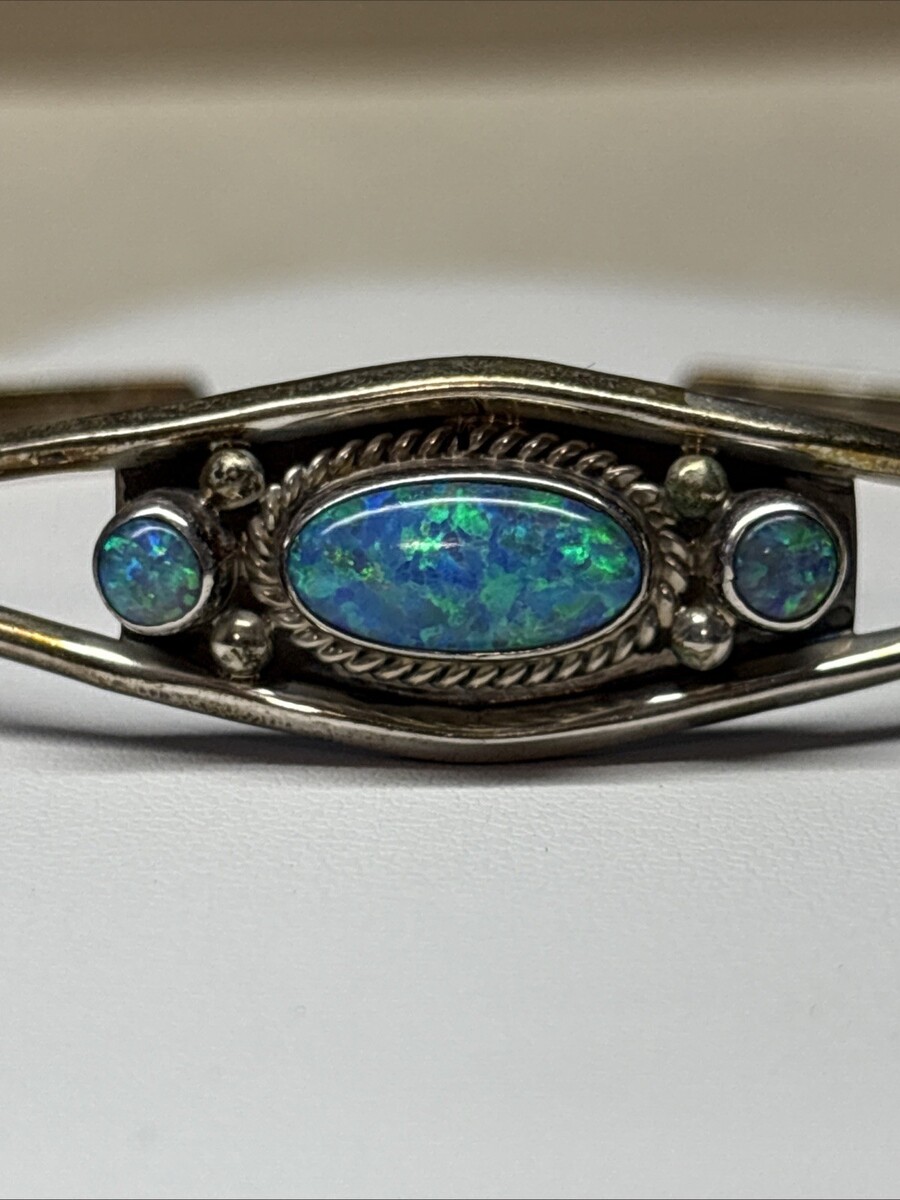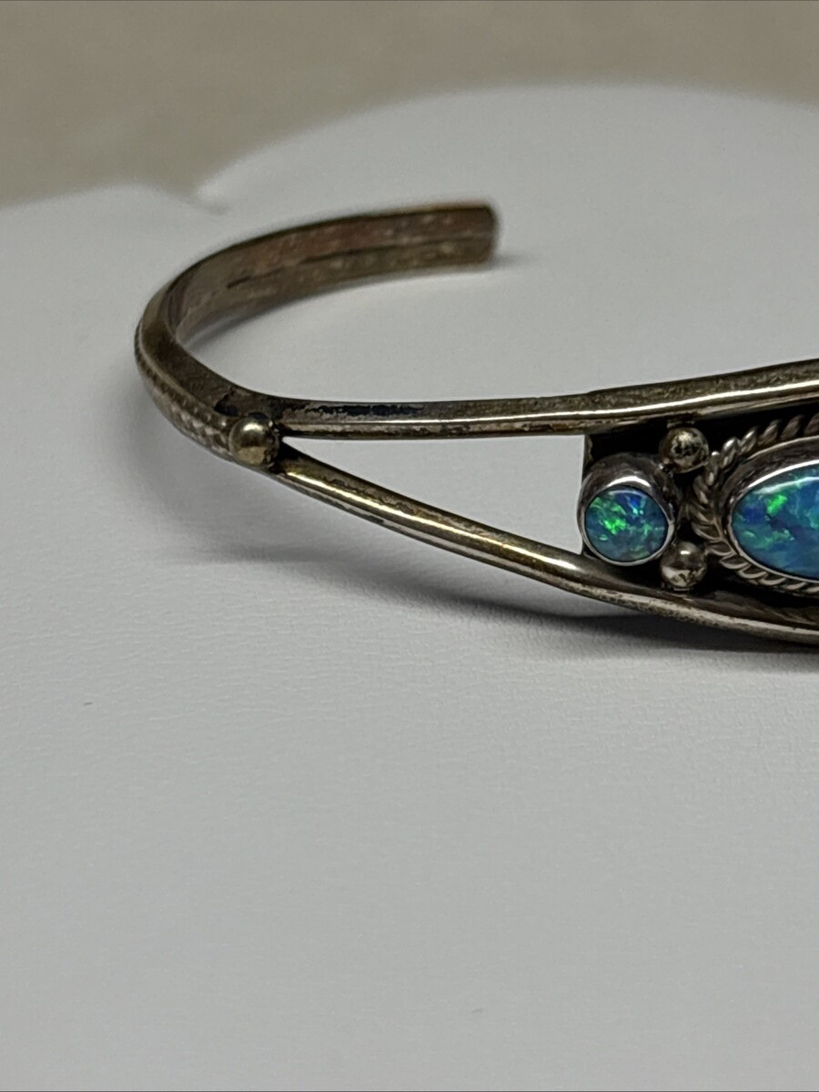 BENNIE BOWEKATY BRACELET STERLING SILVER WITH OPALS. Item is marked Sterling with the B symbol below. i?m not sure of the age of the piece, but I know that Opals are real. Dimensions and weight are in pictures.