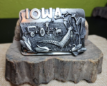 Bergamot Brass Works Belt Buckle VTG USA IOWA 1981 Farmer Tractor Corn Pheasant