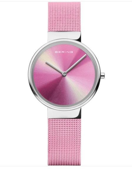 - Bering Womens Watch Milanese Pink Stainless Steel Mesh 31mm Quartz Analog