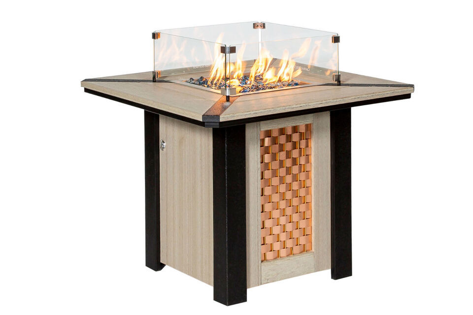 BERKSHIRE FIRE PIT TABLE - Outdoor Poly Lumber Square Firepit Copper Weave Inset