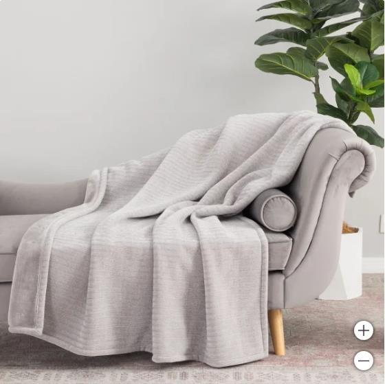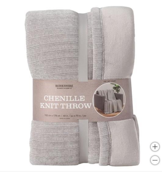 - Berkshire Throw Gray Chenille Knit Reversible Velvet Plush Polyester 60" X 70"