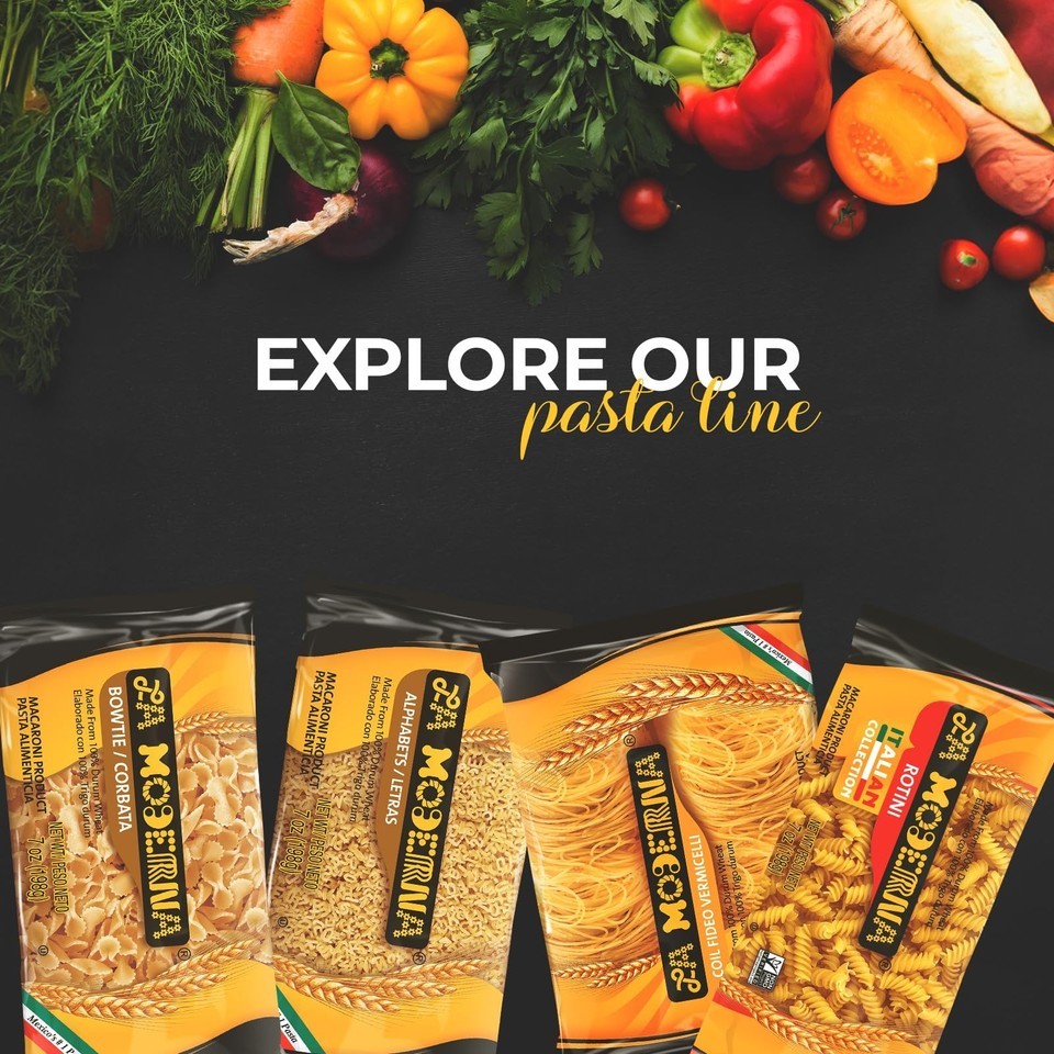 Nuestra sopa de fideos es ideal para familias que buscan una opcin divertida y sabrosa en cada comida. Gracias a su forma nica de fideos y sabor a tomate y pollo, es perfecta para deleitar tanto a grandes como a pequeos. Est libre de conservadores, grasas, azcares y colesterol, y su bajo ndice glucmico la hace adecuada para diabticos. Al cocinarla, su volumen crece, y con solo 3.5 oz puedes obtener hasta cuatro porciones, convirtindola en la solucin idnea para el men semanal o para variar las meriendas para nios. Solo aade tu protena favorita y tendrs un platillo completo. Contiene gluten y no presenta alrgenos. Desde 1920, La Moderna, una orgullosa empresa mexicana, ha acompaado a generaciones de familias en su cocina, siendo parte de esas recetas que se transmiten de abuelos a nietos y de madres a hijos. Con ms de 40 cortes diferentes, ofrecemos una gran variedad de sopas y pasta noodles, incluyendo vermicelli, pasta shells, elbow pasta, spaghetti, cavatappi pasta y alphabet pasta. Adems de nuestras pastas, contamos con una seleccin de deliciosas galletas y harina, ampliando as nuestra gama de productos para satisfacer todas tus necesidades culinarias.