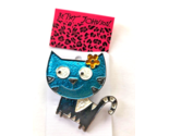 - Betsey Johnson Blue Cat Brooch Pin Silver Tone