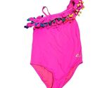 - Betsey Johnson Girl's One-Shoulder Pink Pom-Pom Swimsuit Floral Hula Skirt & Lei