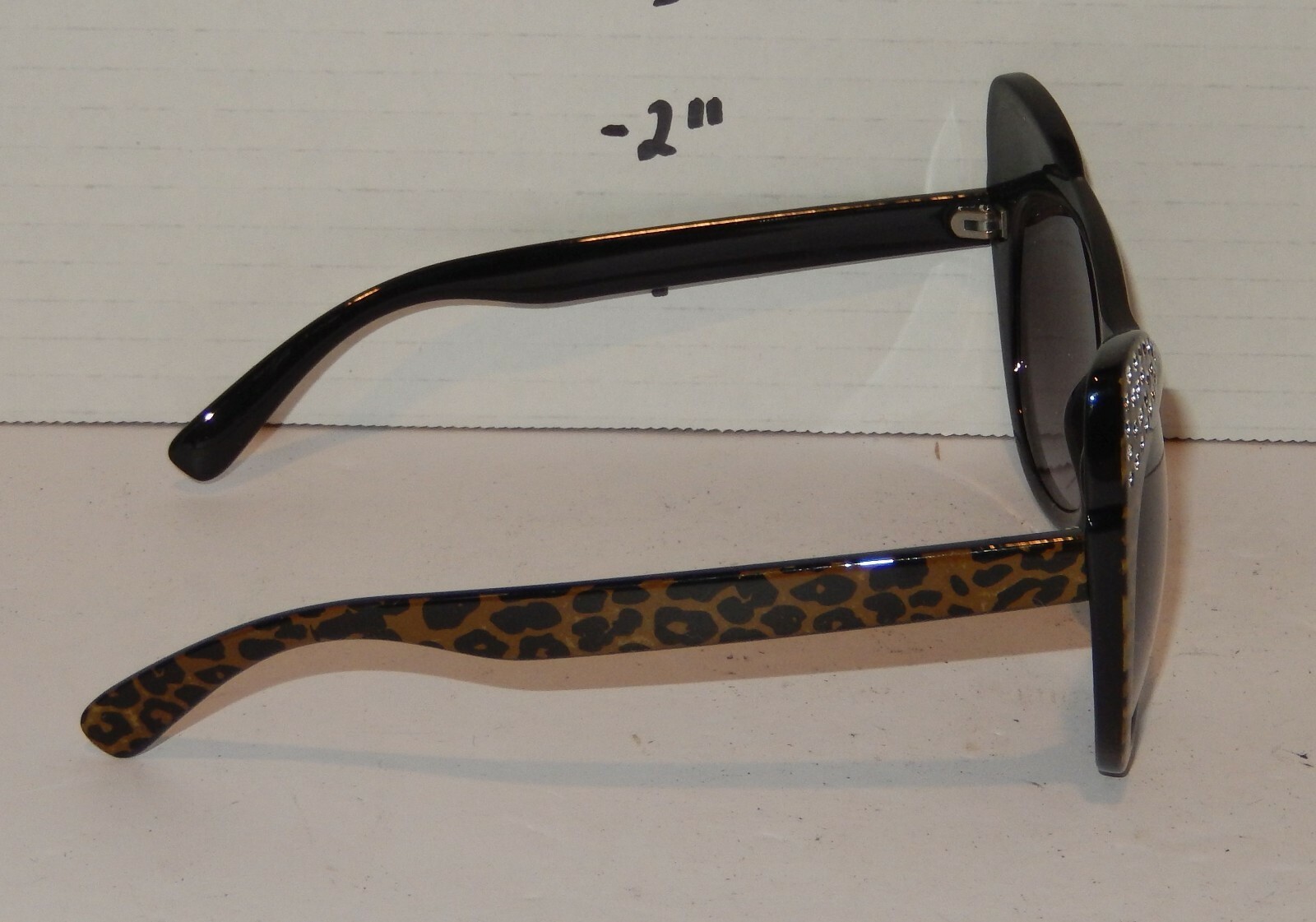 Up for sale is a Betsey Johnson Leopard Print Cat Eye Rhinestone Sunglasses Women?s Brown Black.