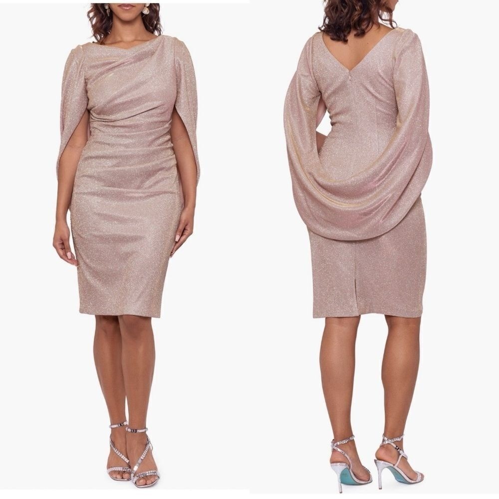 - Betsy & Adam Glitter Knit Cape Back Cocktail Dress, Rose Pink Gold, Size 8, NWT