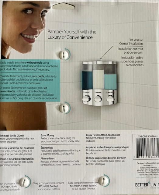 - Better Living 76334-1 Euro Trio 3 Shower Liquid Dispenser with Translucent Conta