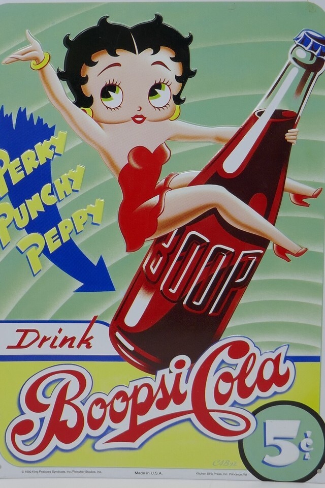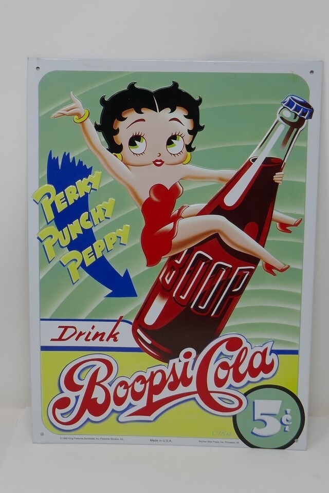 - Betty Boop 1997 Drink Boopsi Cola 9.5" x 13" Tin Sign