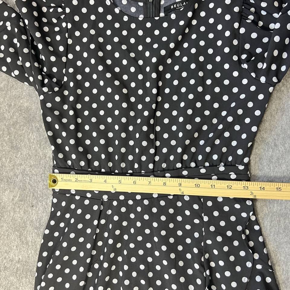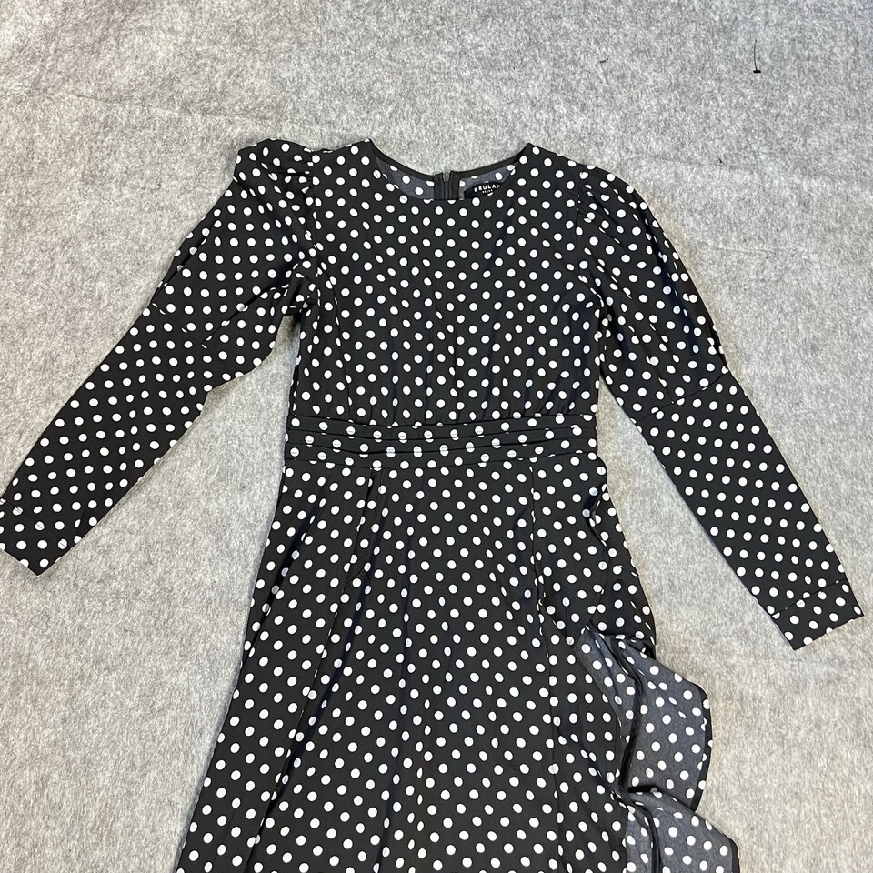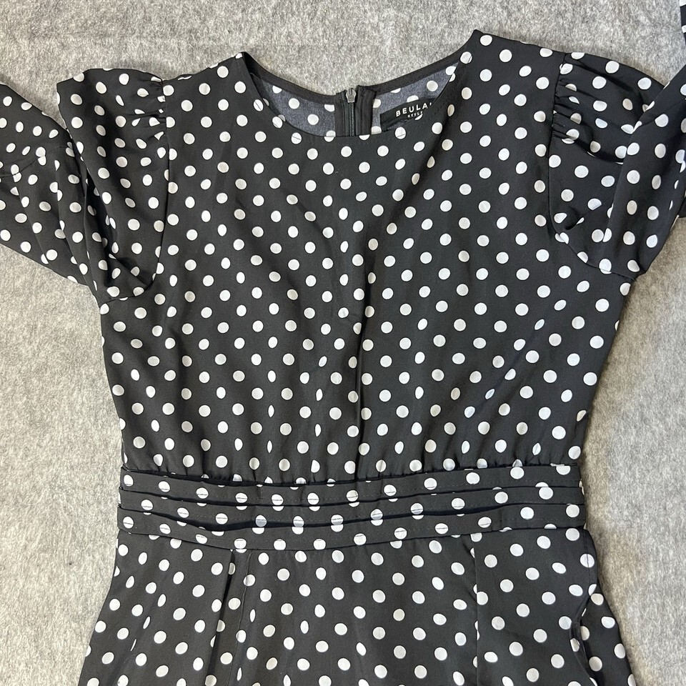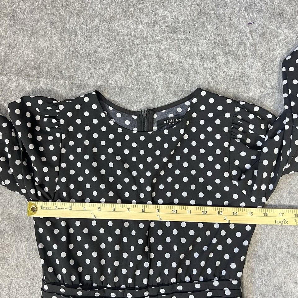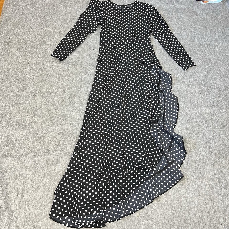 - Beulah Style Black White Polka Dot Maxi Dress Small Long Sleeve Ruffle Hem