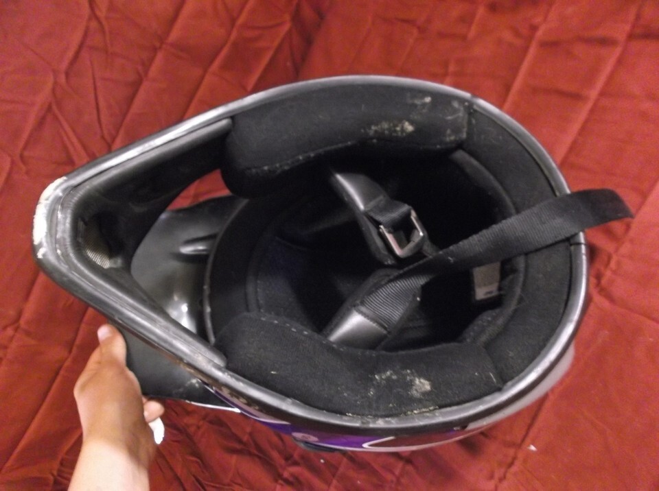 This helmet is in overall good condition. It does show small scratches and scuffs on the outside of it, but inside is pristine.
