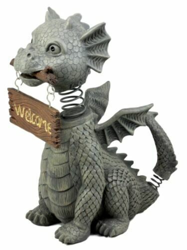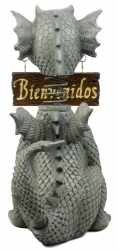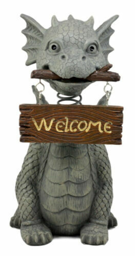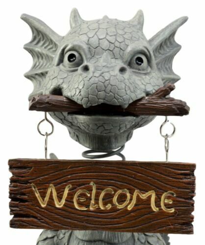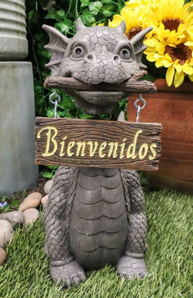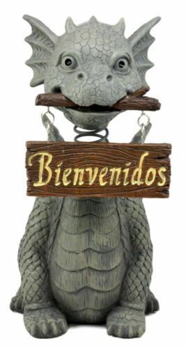 - Bienvenidos Welcome Sign Dragon Garden Greeter Bobblehead Statue Faux Stone