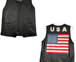 - Bikers Dream Apparel Lined Button-down Black Leather USA Flag Vest Men's size S