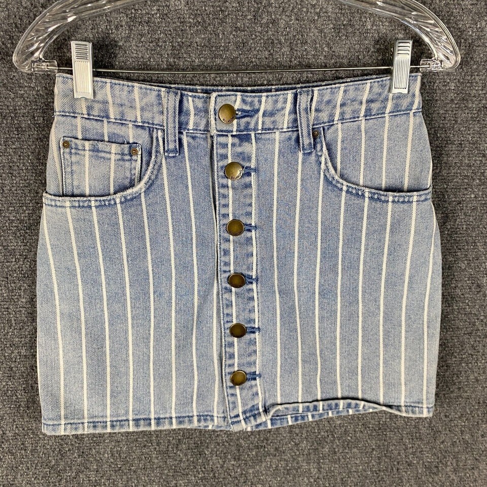 - Bilabong Skirt Women's 26 Mini Striped Button Fly 100% Cotton Denim