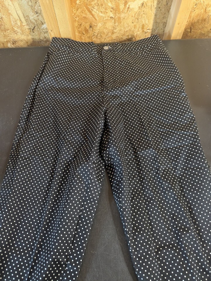 Elevate your casual wardrobe with these stylish Bill Blass polka dot capris. Made from a comfortable cotton blend knit fabric, these capris feature a flat front and straight leg style with a 21 inch inseam. The multicolor polka dot pattern adds a fun and feminine touch to your outfit.
