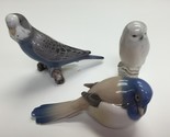 Bing Grondahl Porcelain Bird Figurines Budgie #2210, Owl #1741, and Bird #1635