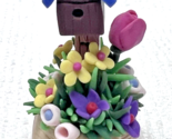Birdhouse w Flowers Blue Roof ELAYNE WATRUS SCULPTURE Coynes Company 1 3/8" T base is 5/8 inch