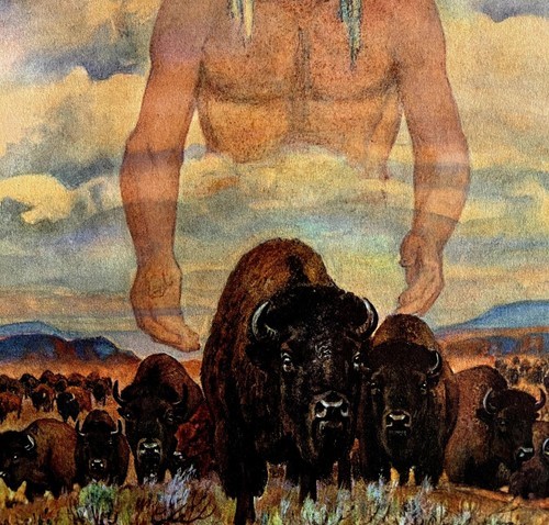 - Bison Buffalo Herd 1954 Art Print Paul Bransom Marlin Perkins Zooparade DWDD3