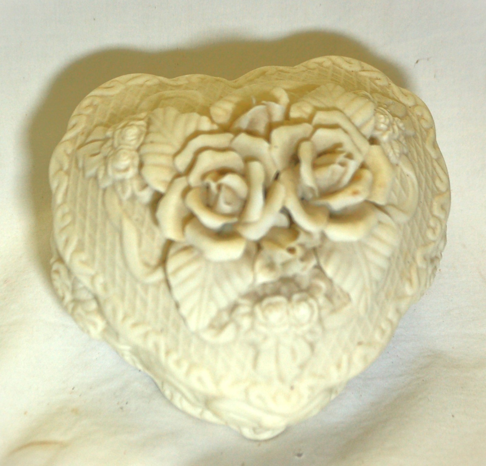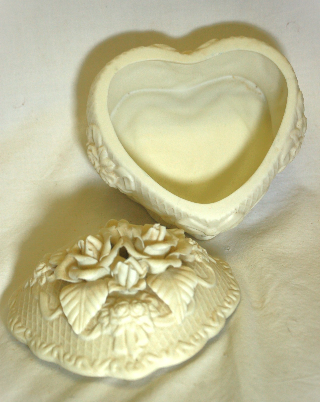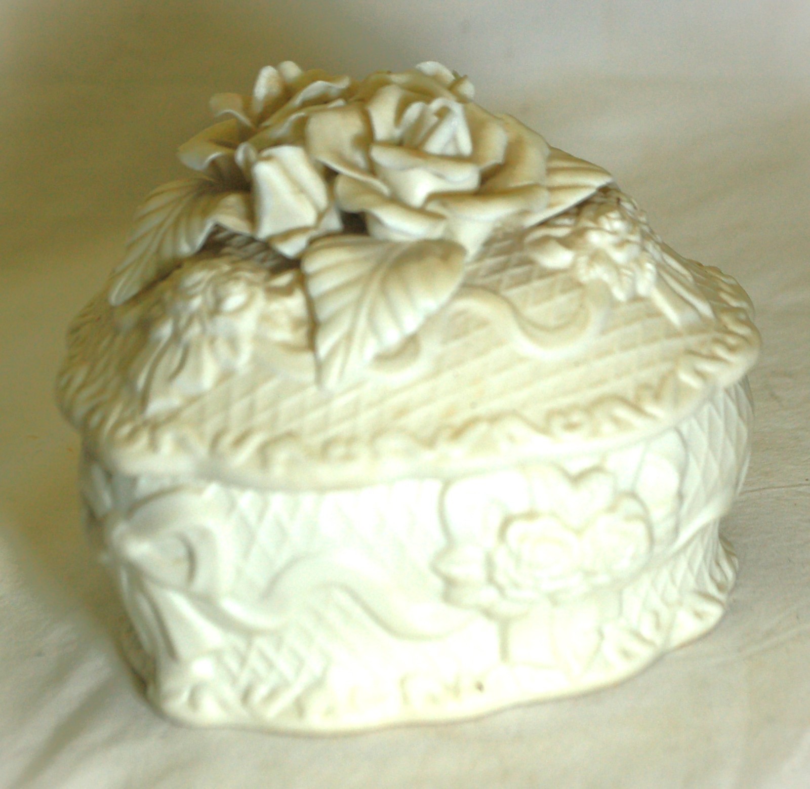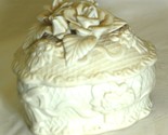 Bisque Trinket Box 3D White Roses Bows Decorative