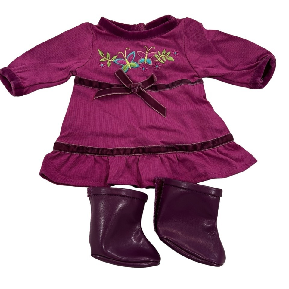 - Bitty Baby American GIrl Purple Dress & Boots Outfit New