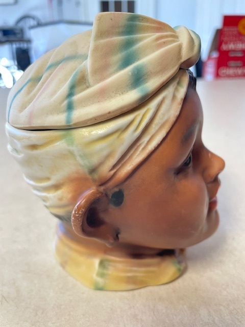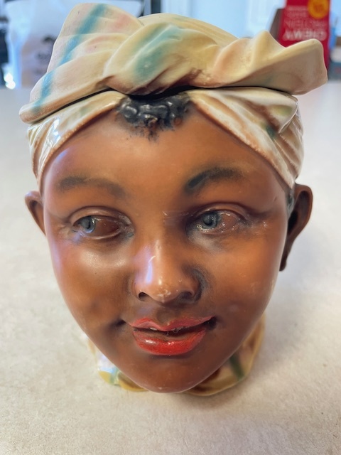 - Black Americana Girl tobacco trinket jar and lid Majolica